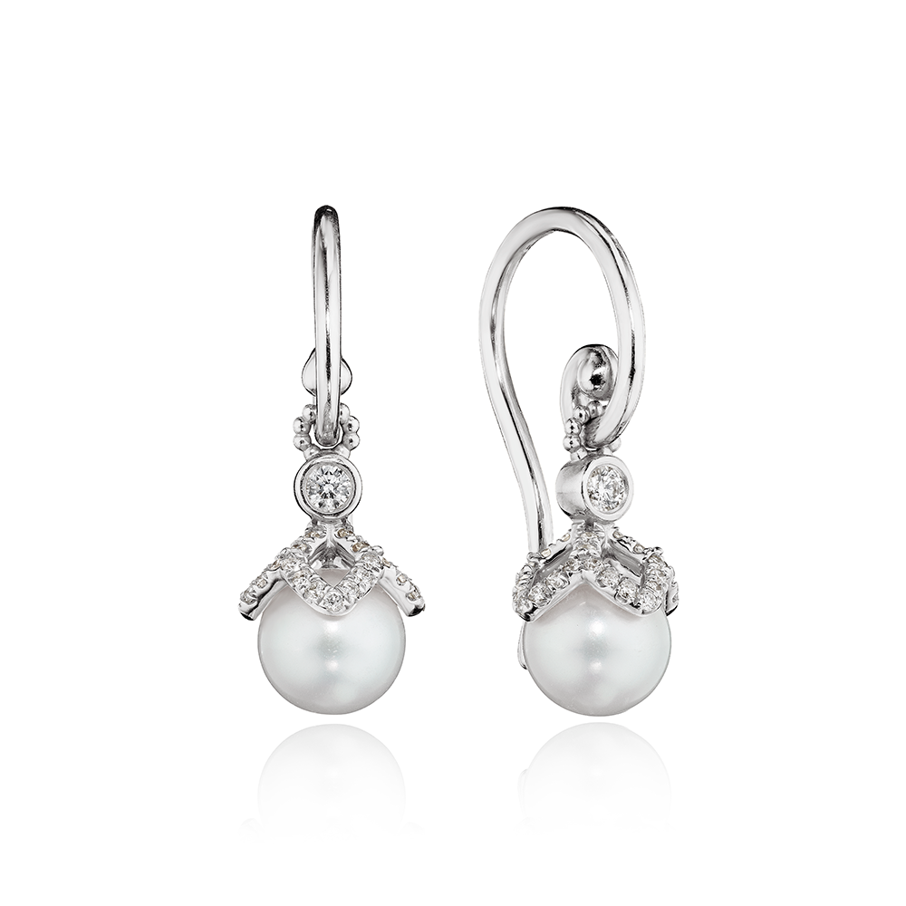 Verragio Petal Diamond & Pearl Cap Dangle Earring