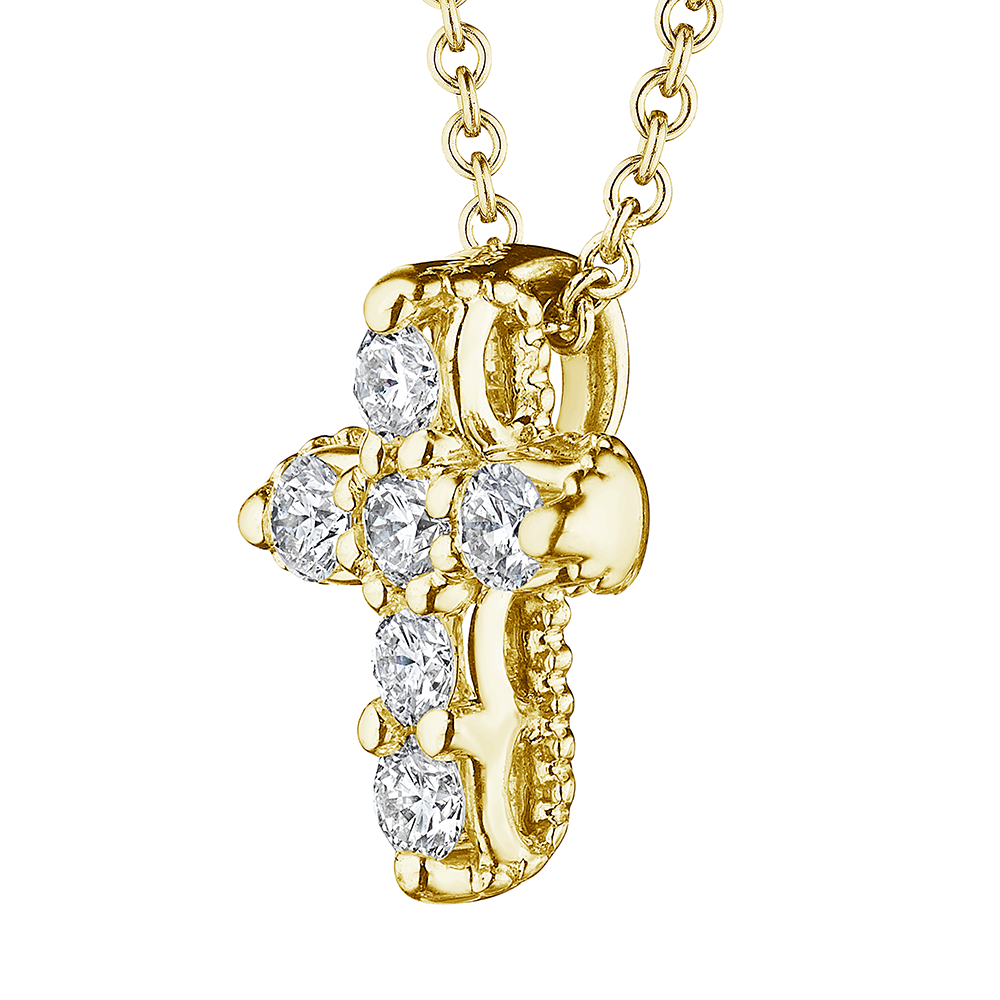 Discover the classic Veritage Diamond Cross, in 18k yellow gold and beautiful diamonds. Perfect everyday elegance.