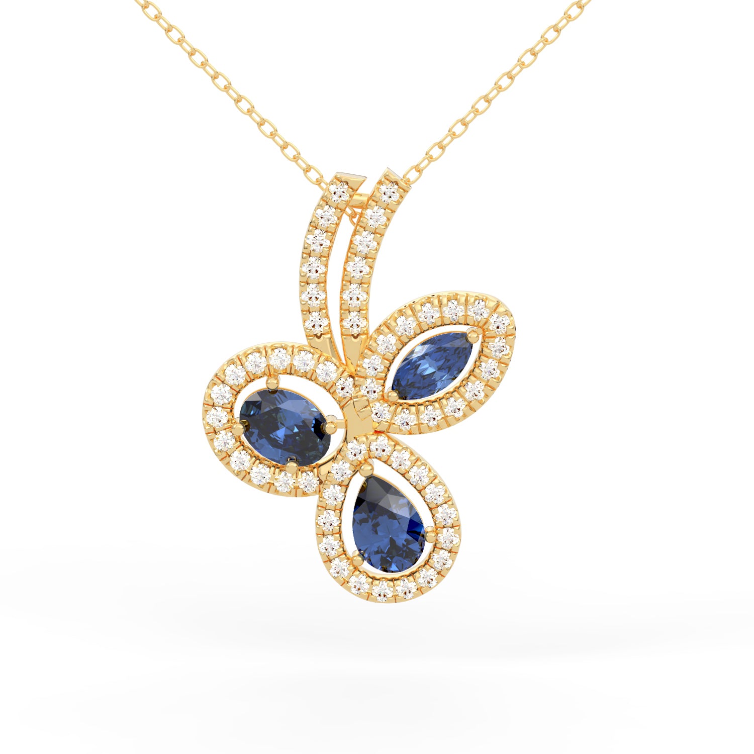 Sapphire and Diamond Clover Style Pendant