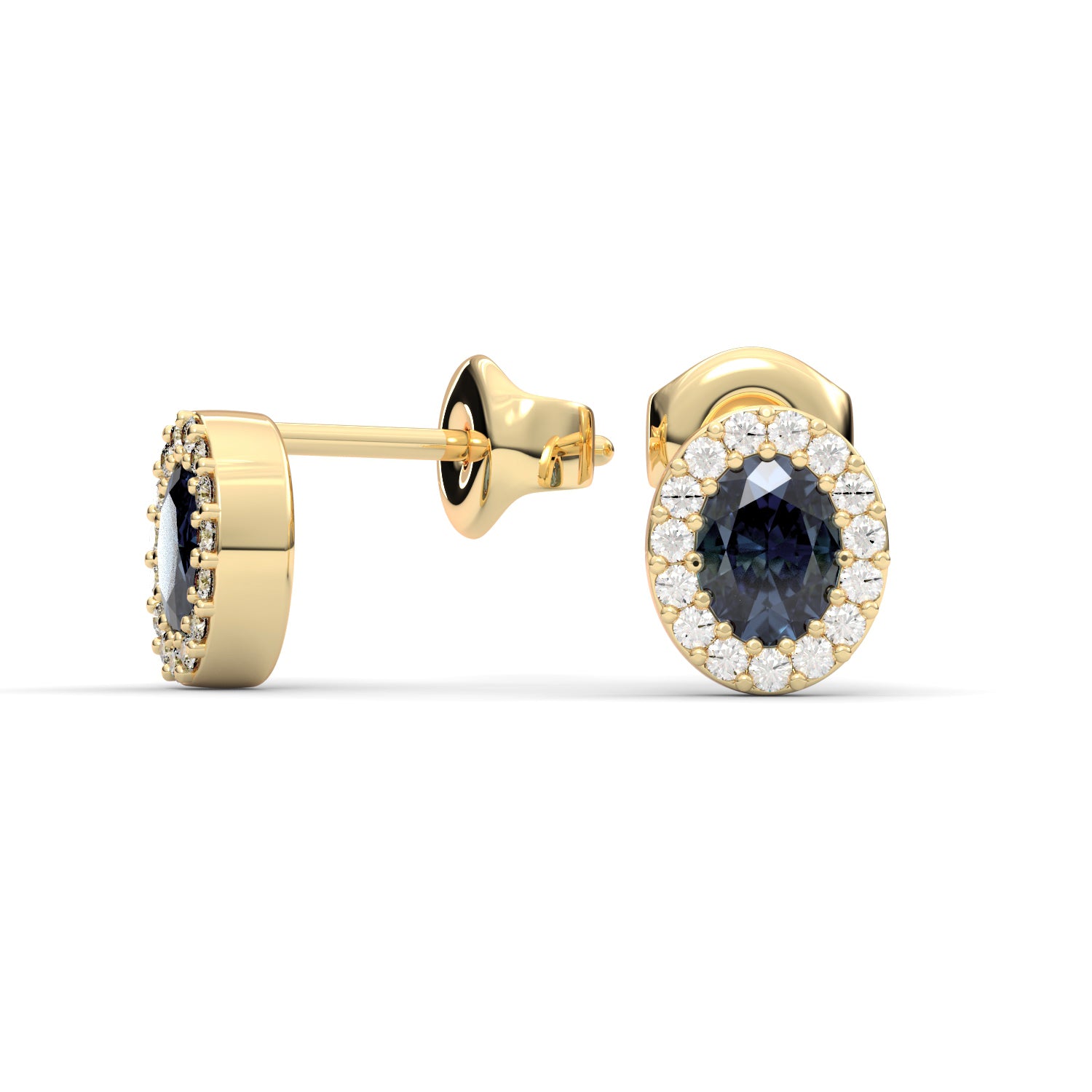 Round Lapis and Petite Halo Diamond Stud Style Earrings