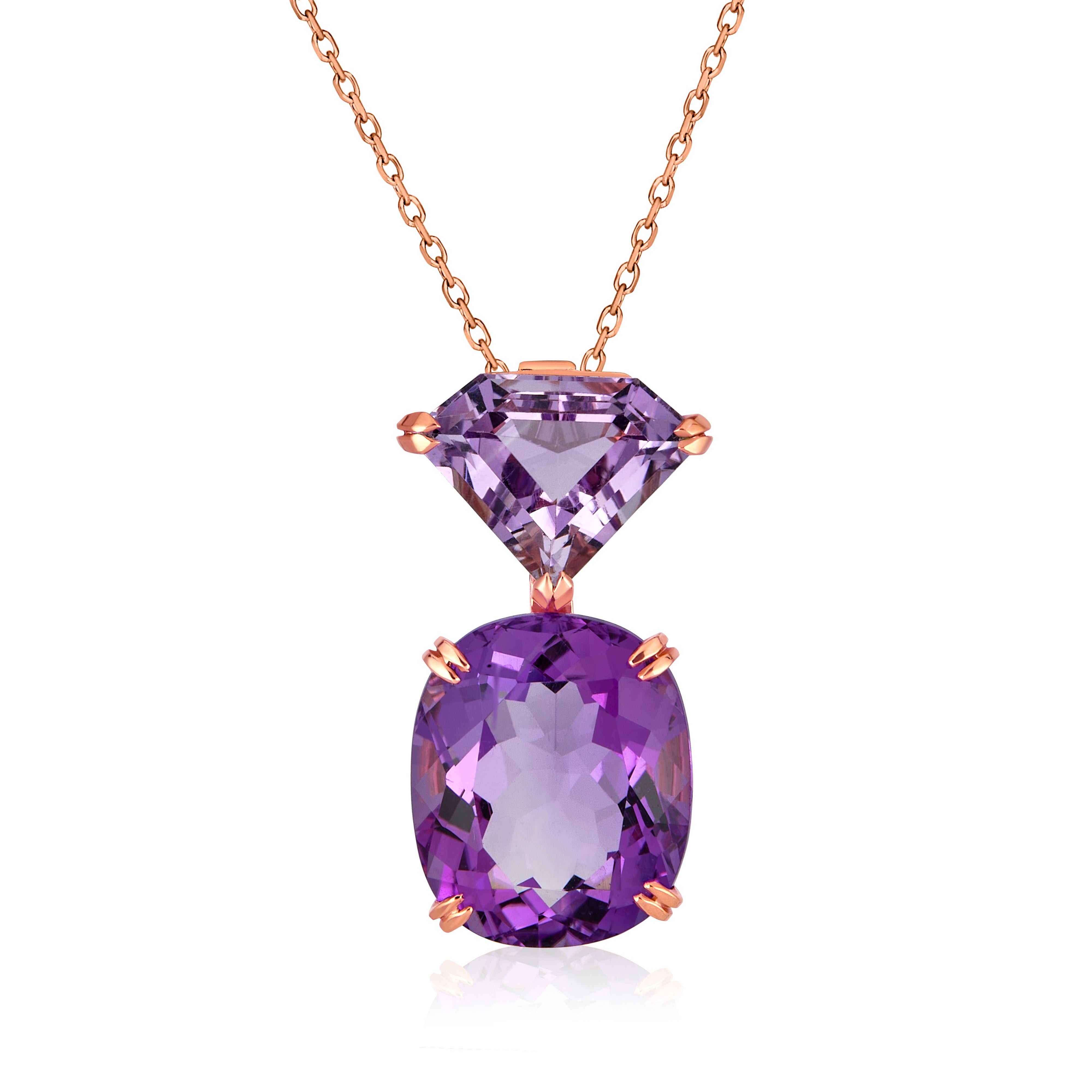 18KRG Multishape Amethyst and Kunzite Drop Style Necklace