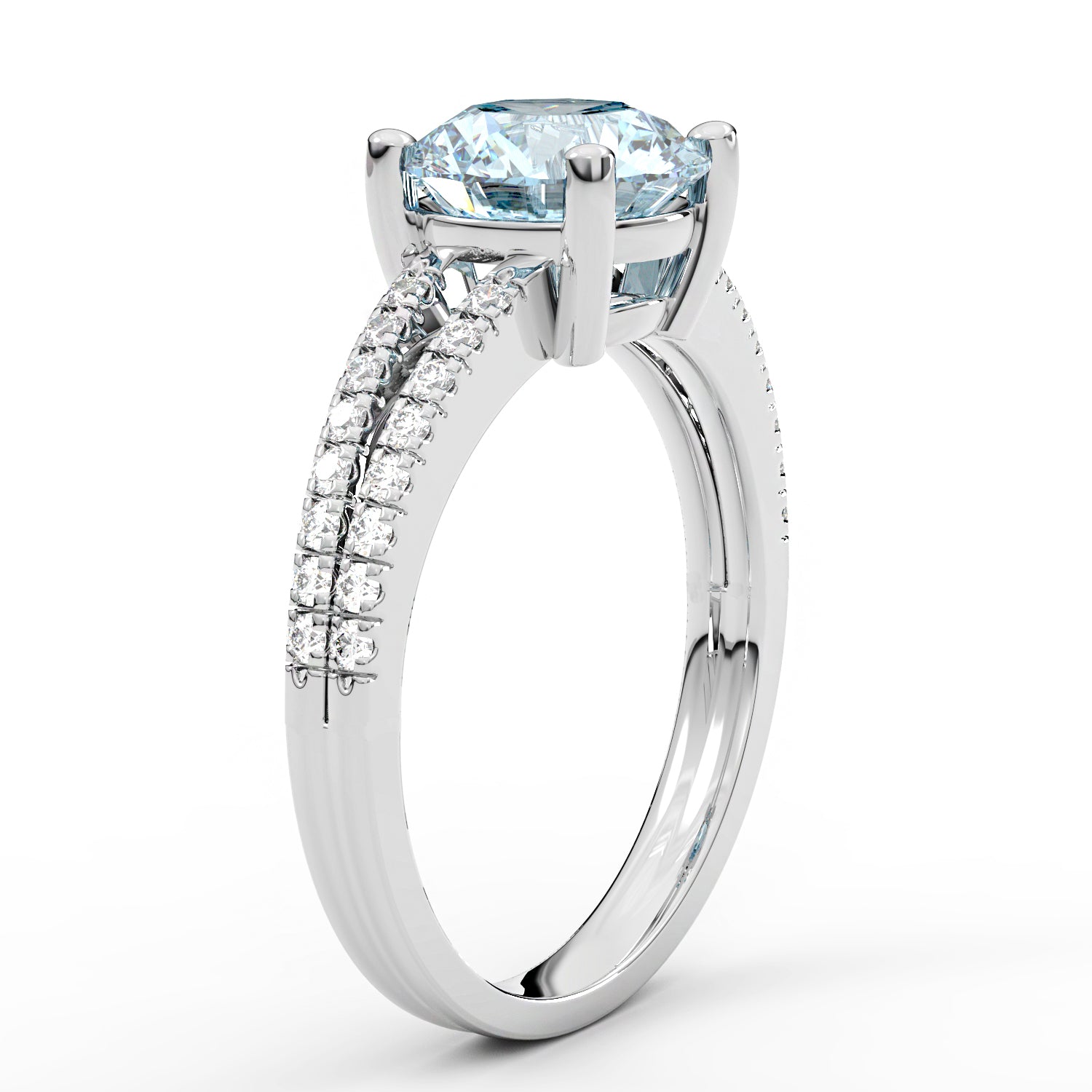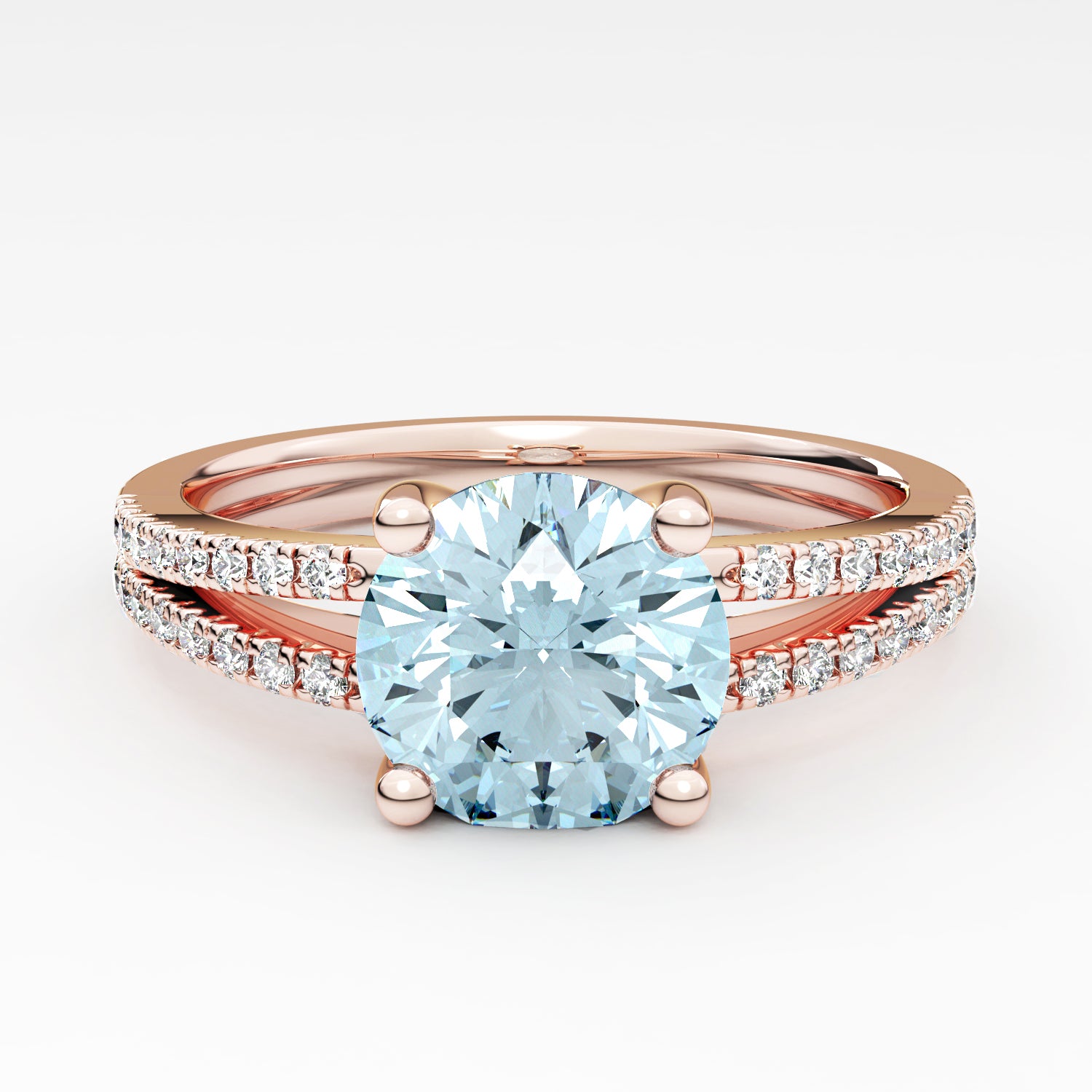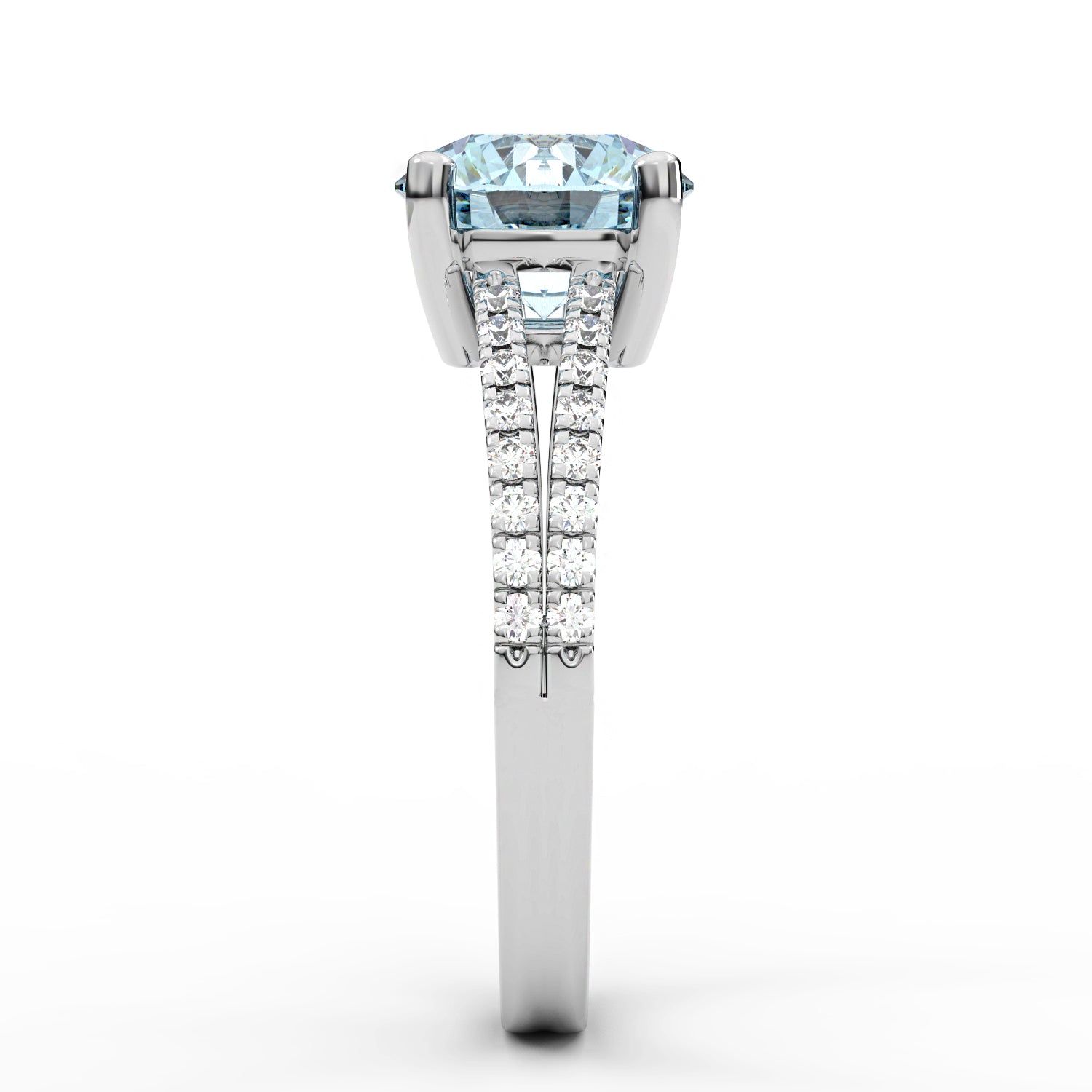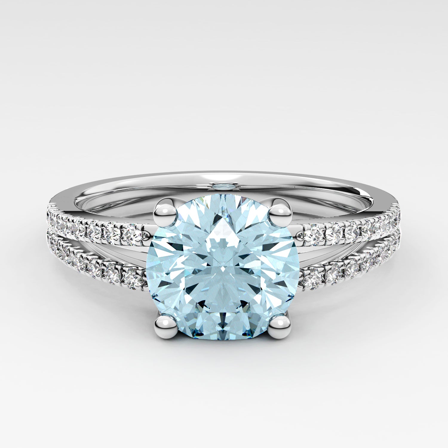 Round Aquamarine and Diamond Split Shank Fashion Ring