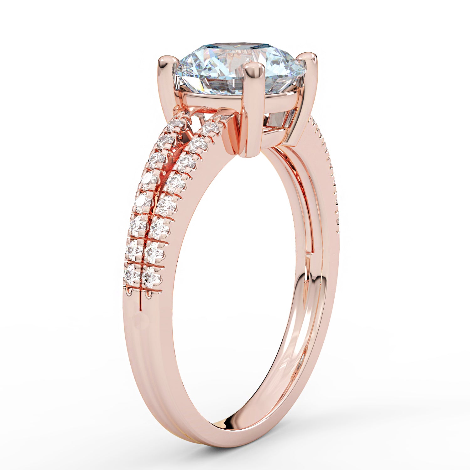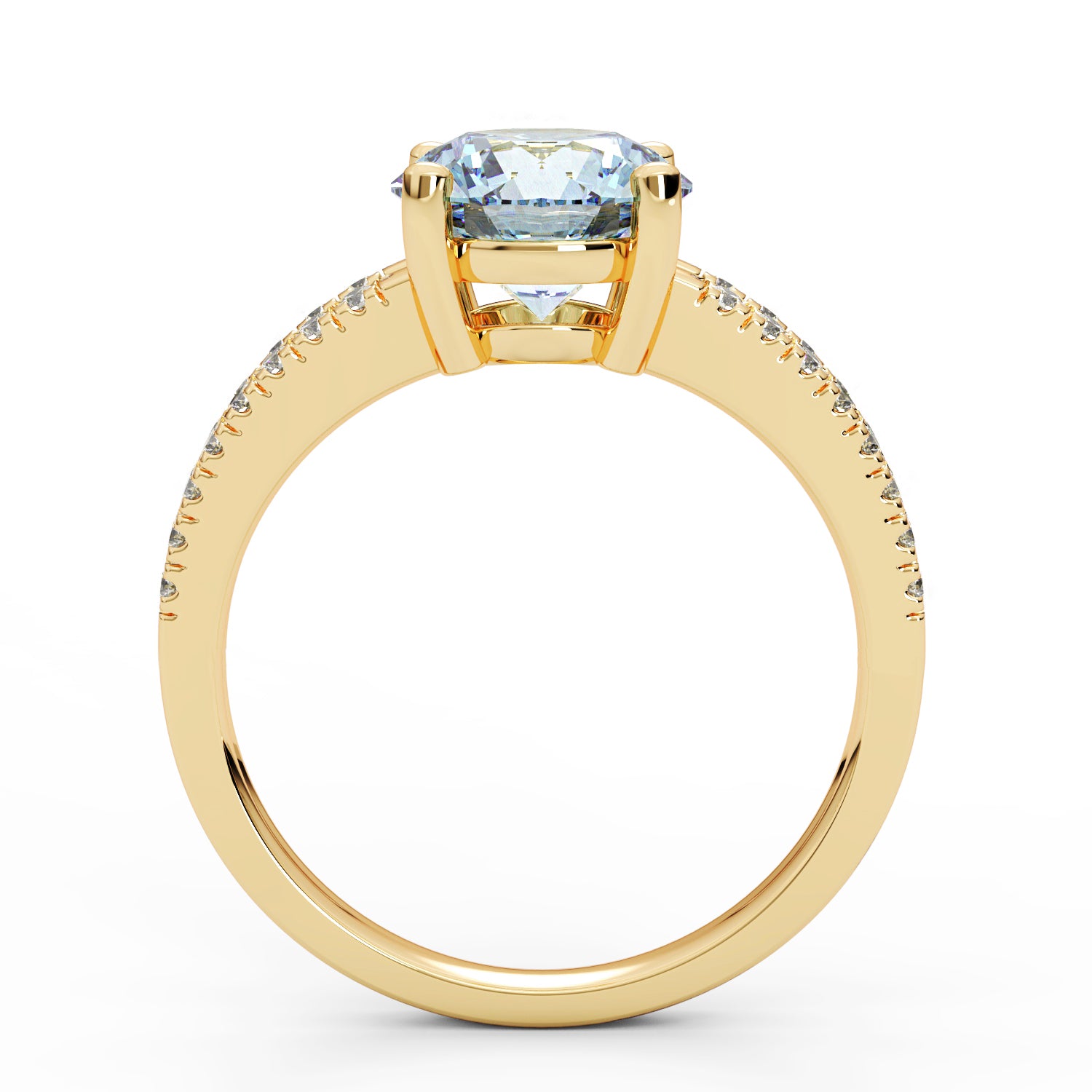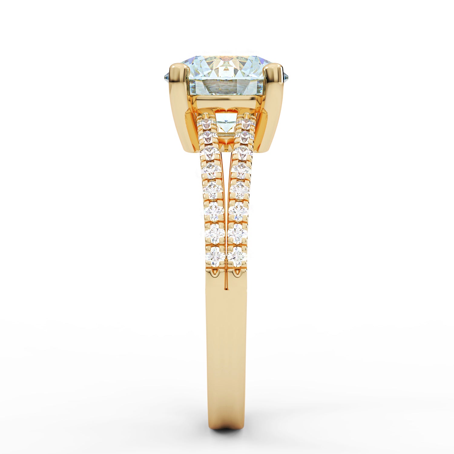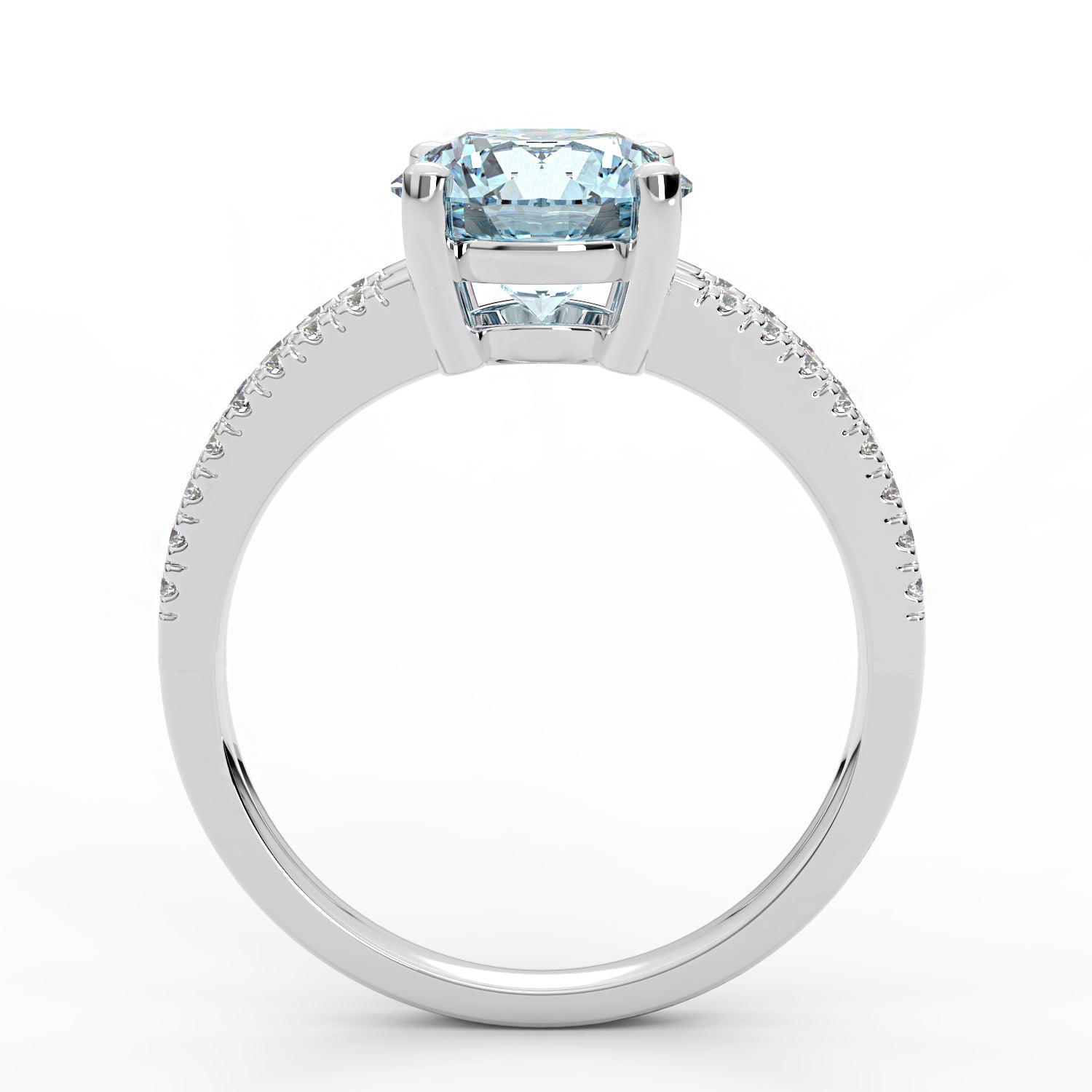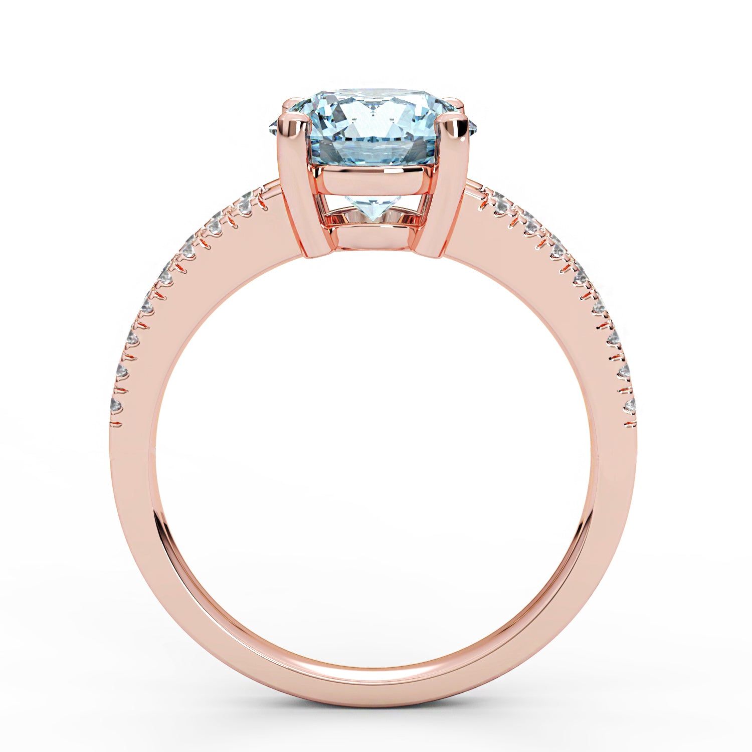 Round Aquamarine and Diamond Split Shank Fashion Ring