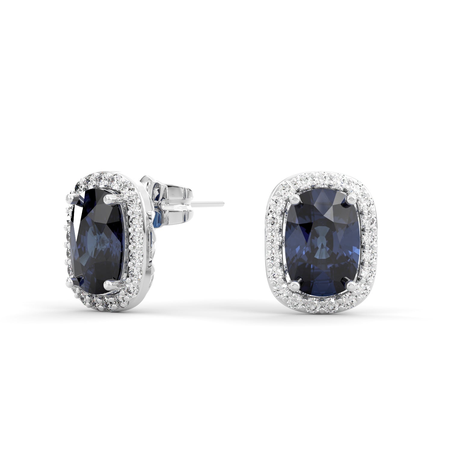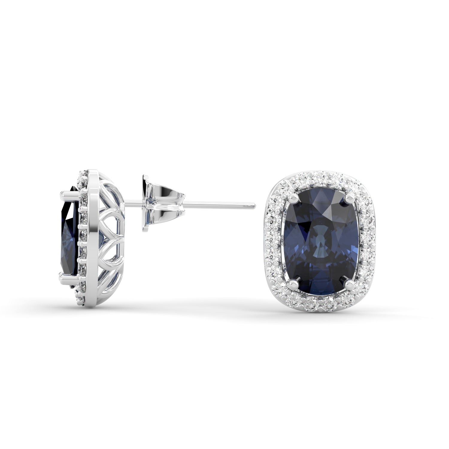 Cushion Cut Sapphire Stud Earrings with Natural Diamond Halo