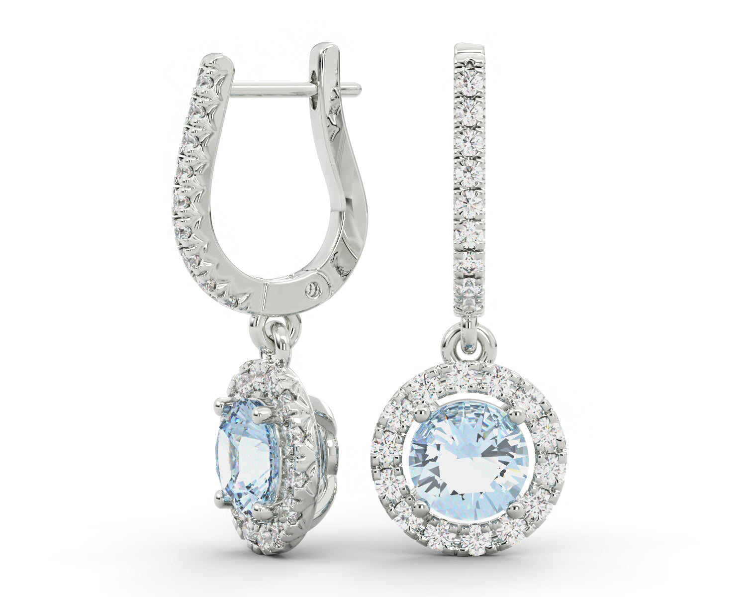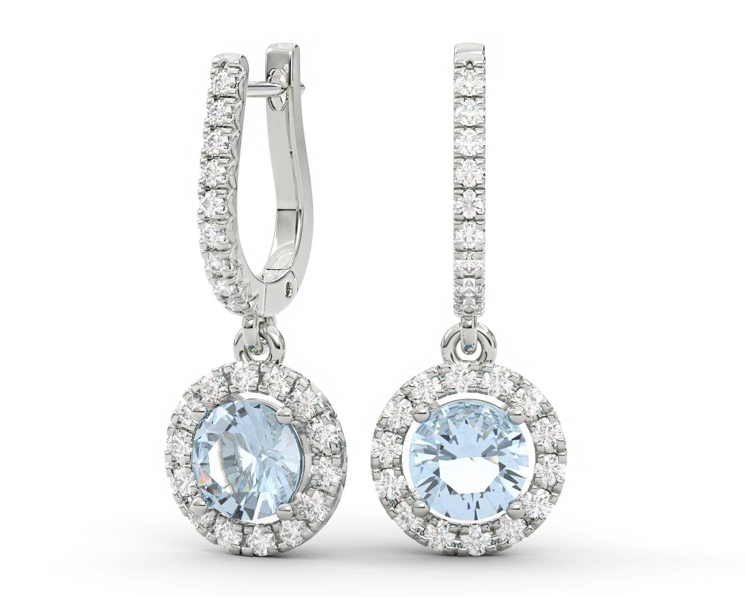 Earrings with Natural Round Brilliant Cut Diamonds and Natural Round Cut Aquamarines