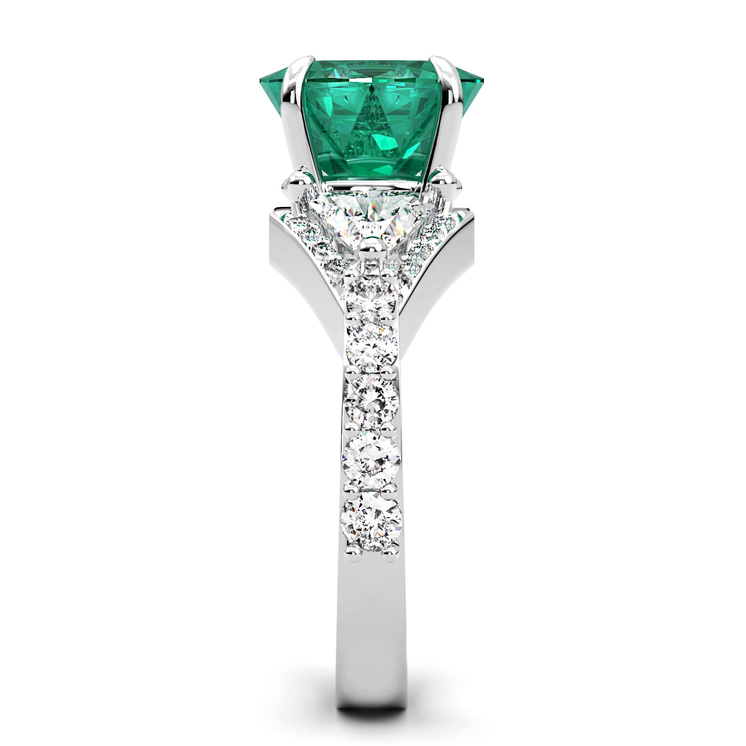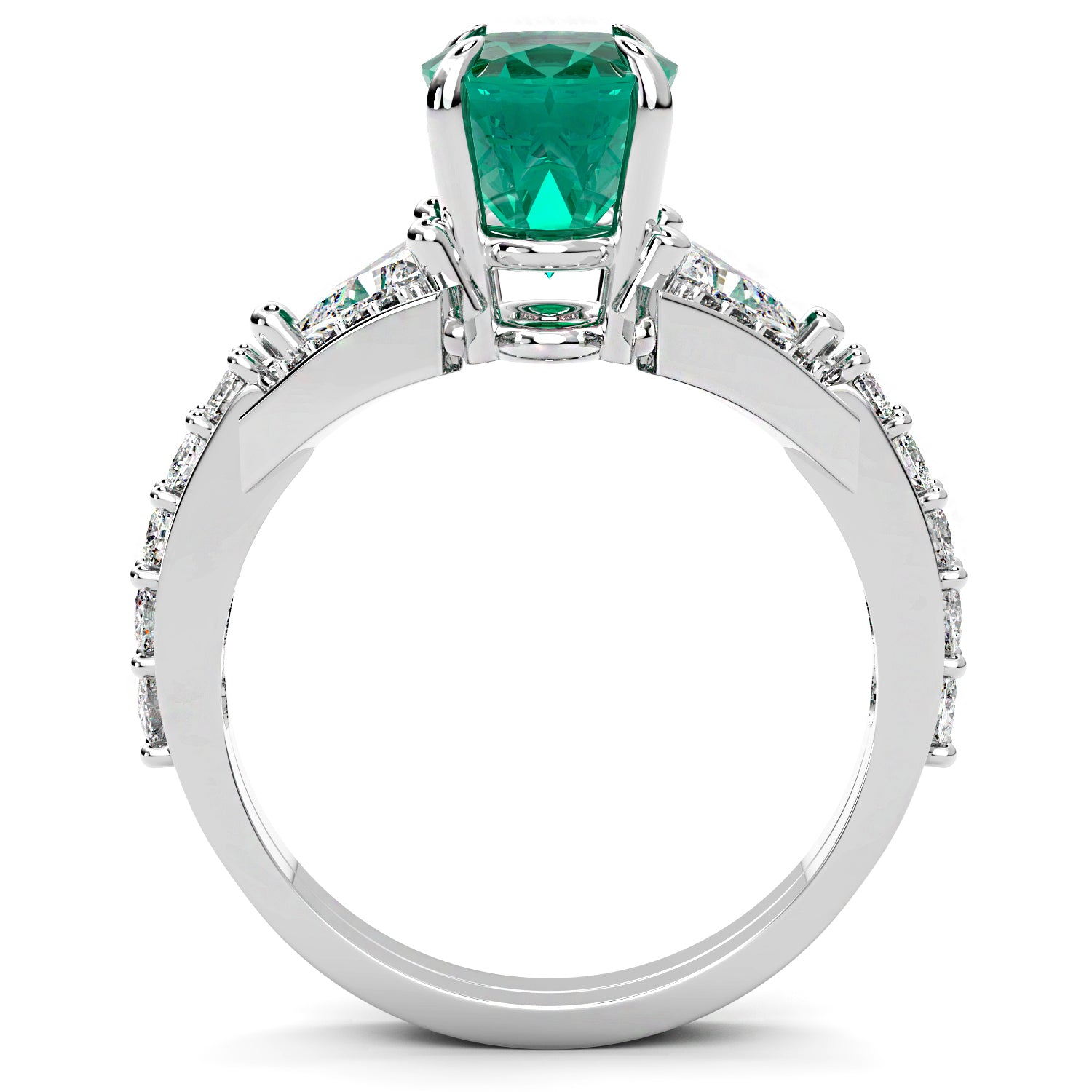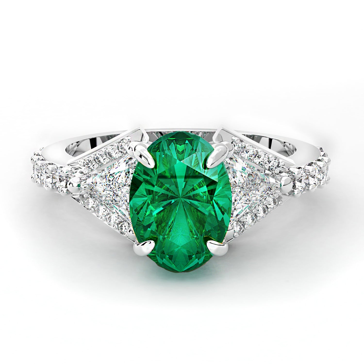 Oval Shaped Zambian Emerald and Diamond Fashion Ring with Trillion Diamond Accents