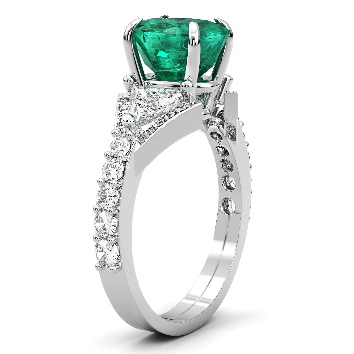 Emerald and Diamond Fashion Ring with Trillion Diamond Accents