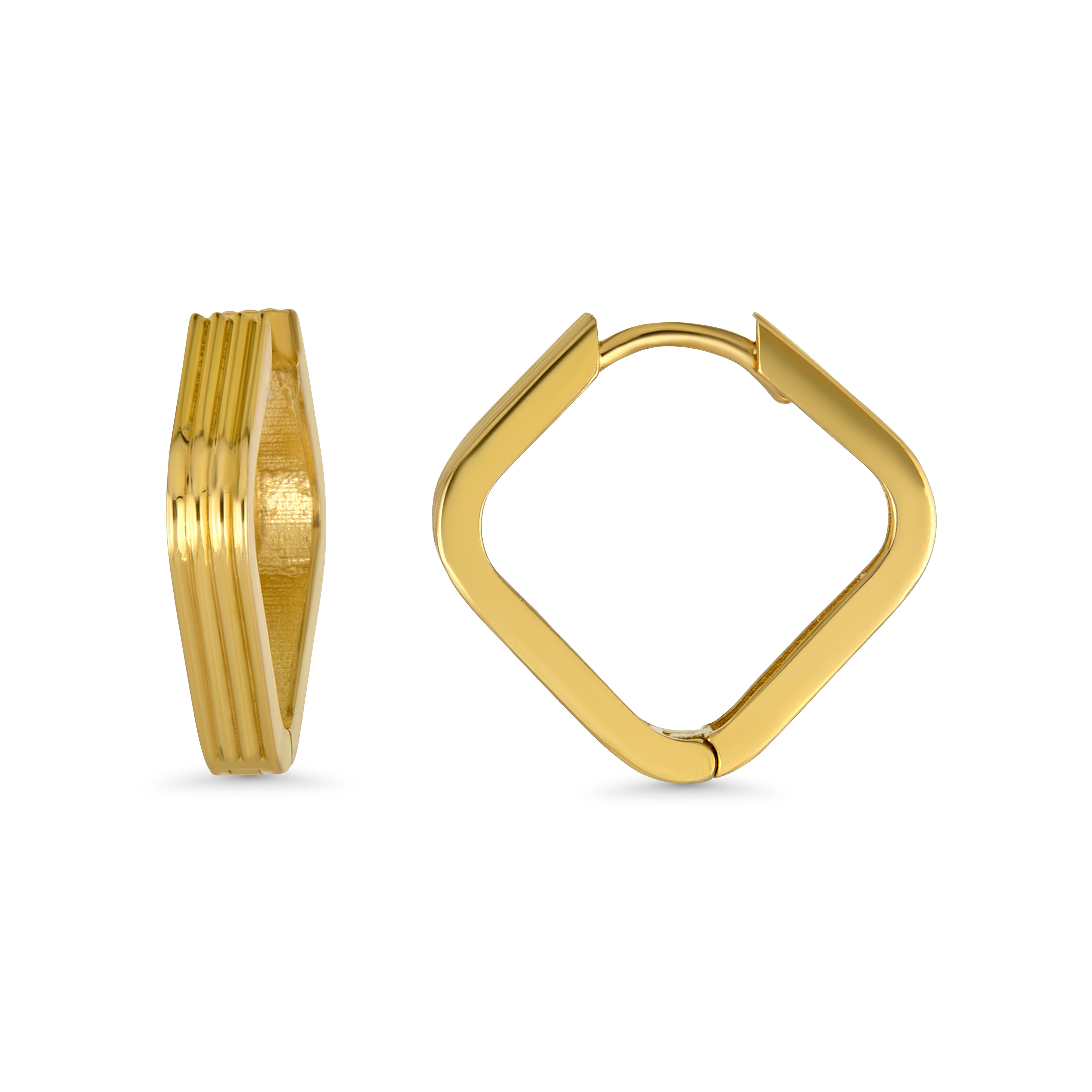 Grooved Square Gold Hoop Earrings