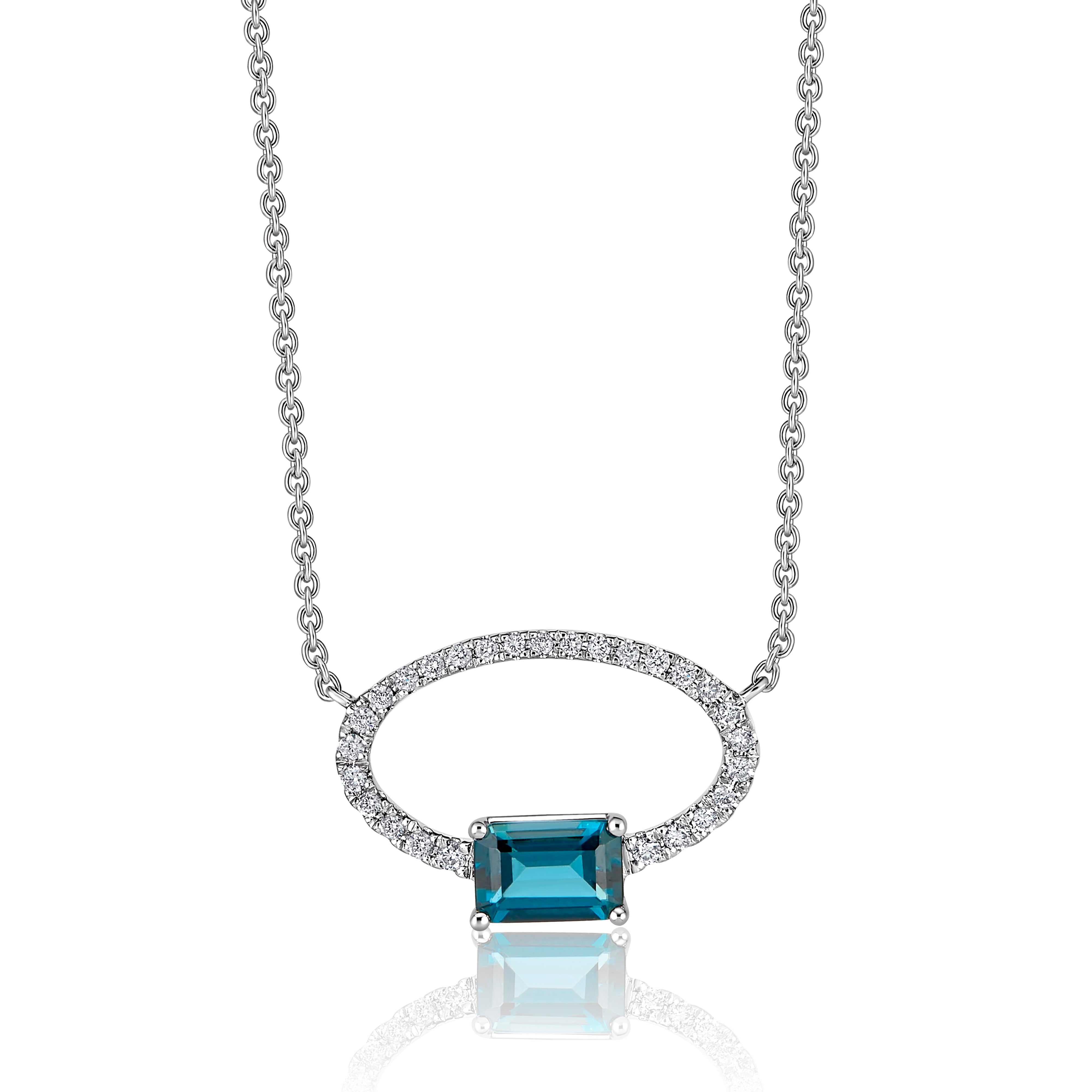 London Blue Topaz on an Open Natural Diamond Oval Necklace