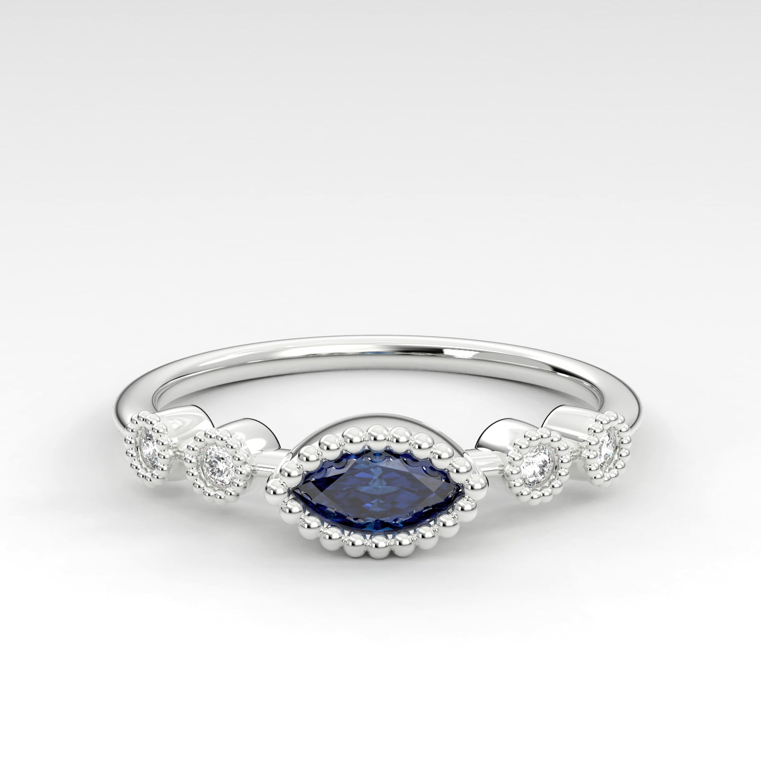 Marquise Sapphire and Diamond Stackable Wedding Band