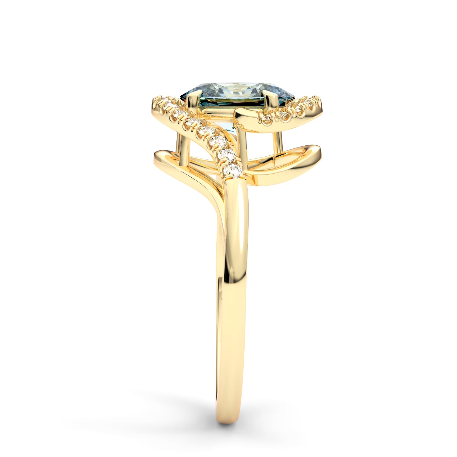 Oval Blue Topaz Ring with Diamond Open Twist Halo