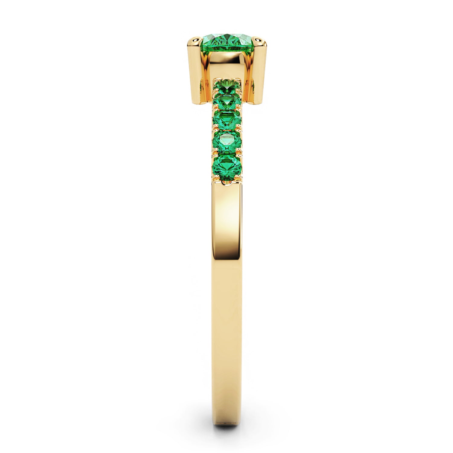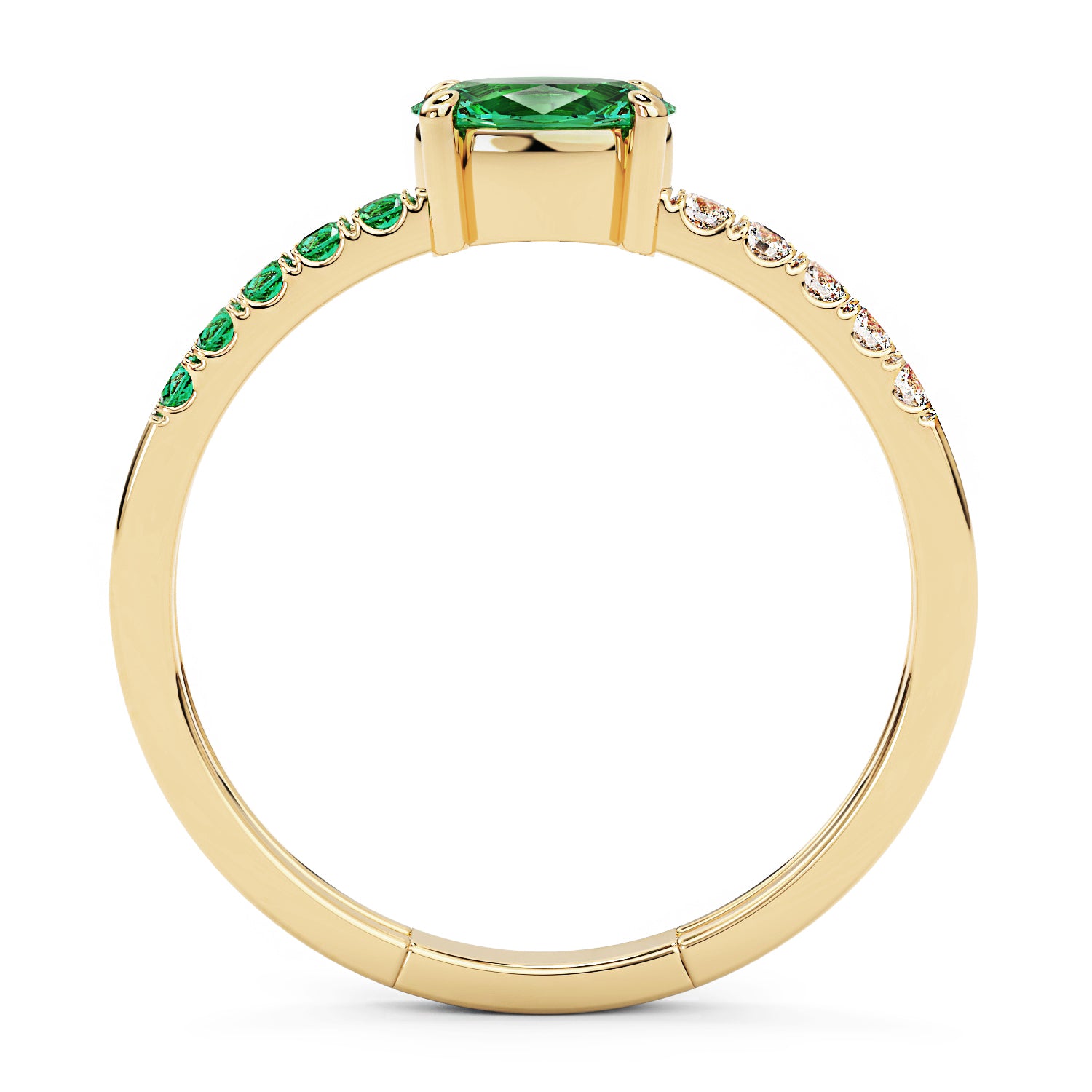 Oval Emerald Fashion Ring with Prong Set Diamonds on One Side and Emeralds on the Other Side