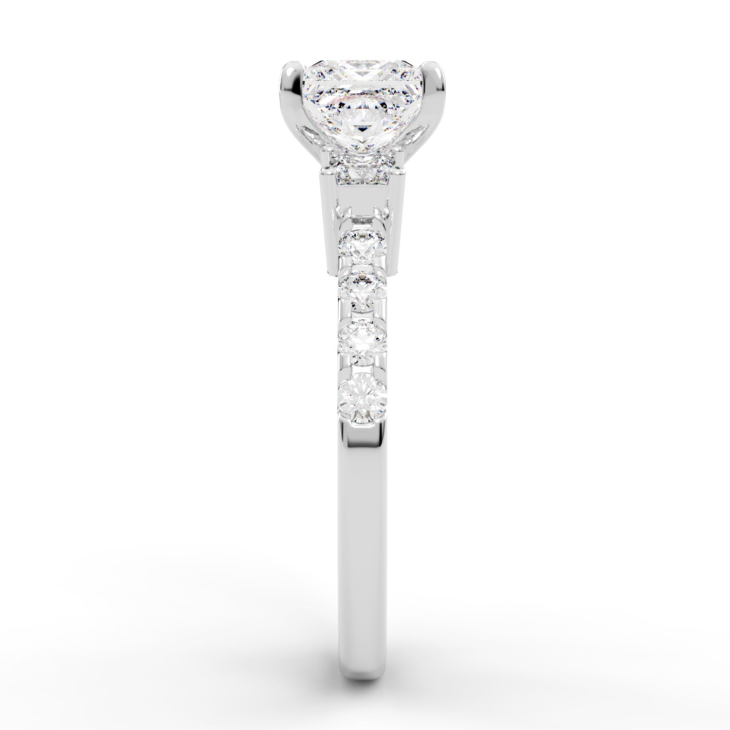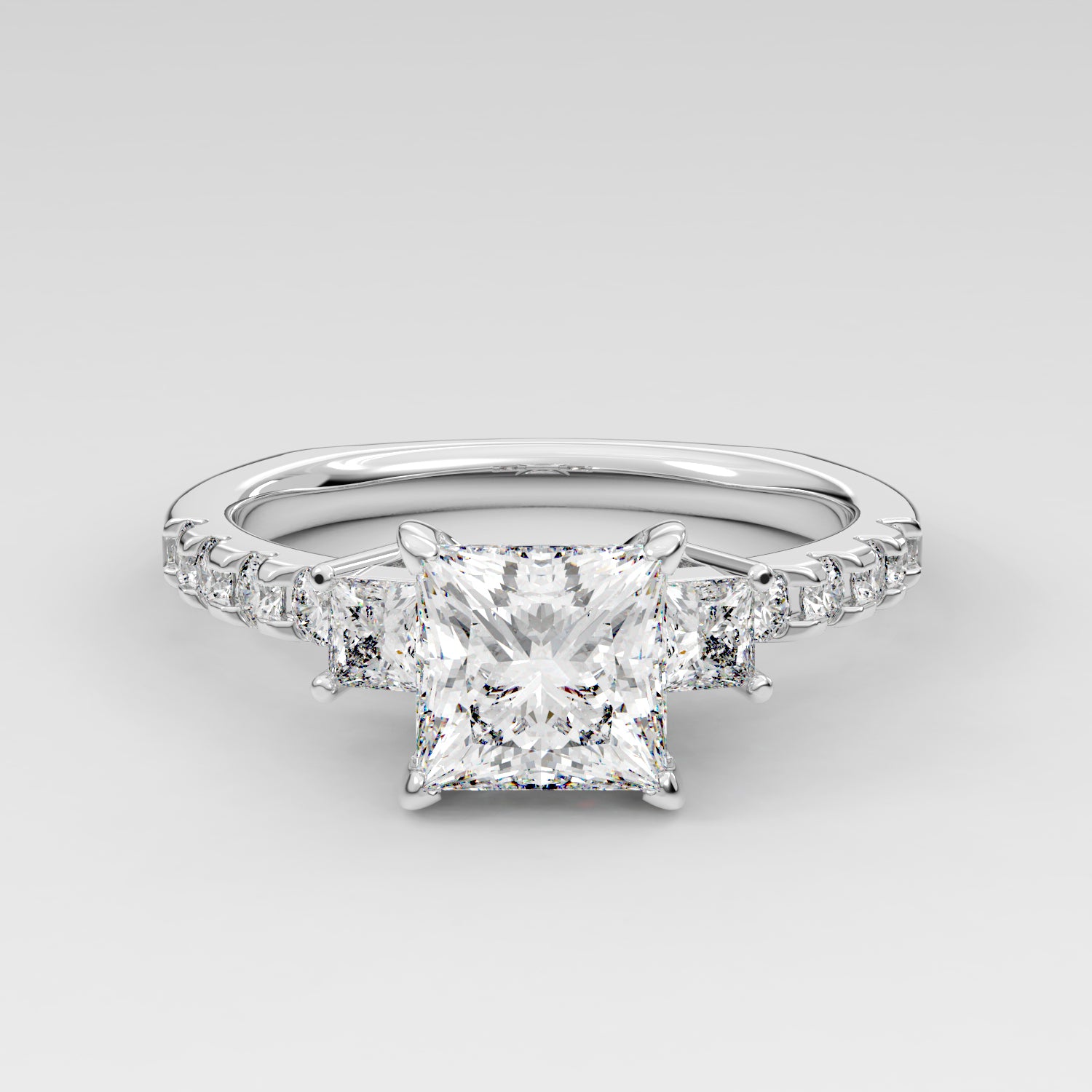 Three Stone Princess Cut Engagement Ring with Diamonds Halfway