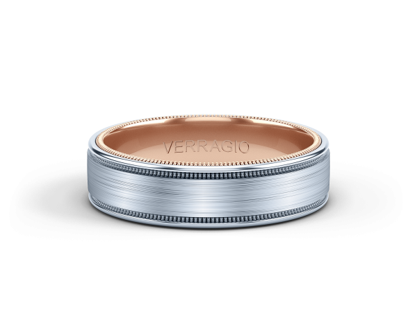 VW-7020 is our stylish matte finished 7MM width men's band. Featuring, beading along the top to compliment Verragio's rose gold signature beading along the interior.