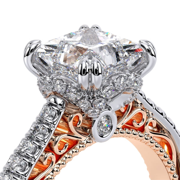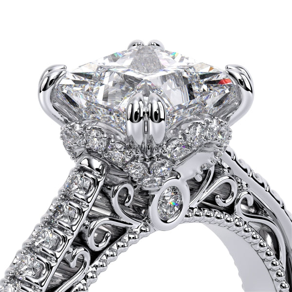 Venetian-5052 engagement ring from the VenetianCollection features a floral tiara on a delicate straight shank with graduating round brilliant diamonds. Choose a lace shank for a more vintage look or opt for a classic shank to keep it simple. This beauty continues to stay as one of our most loved Verragio styles.