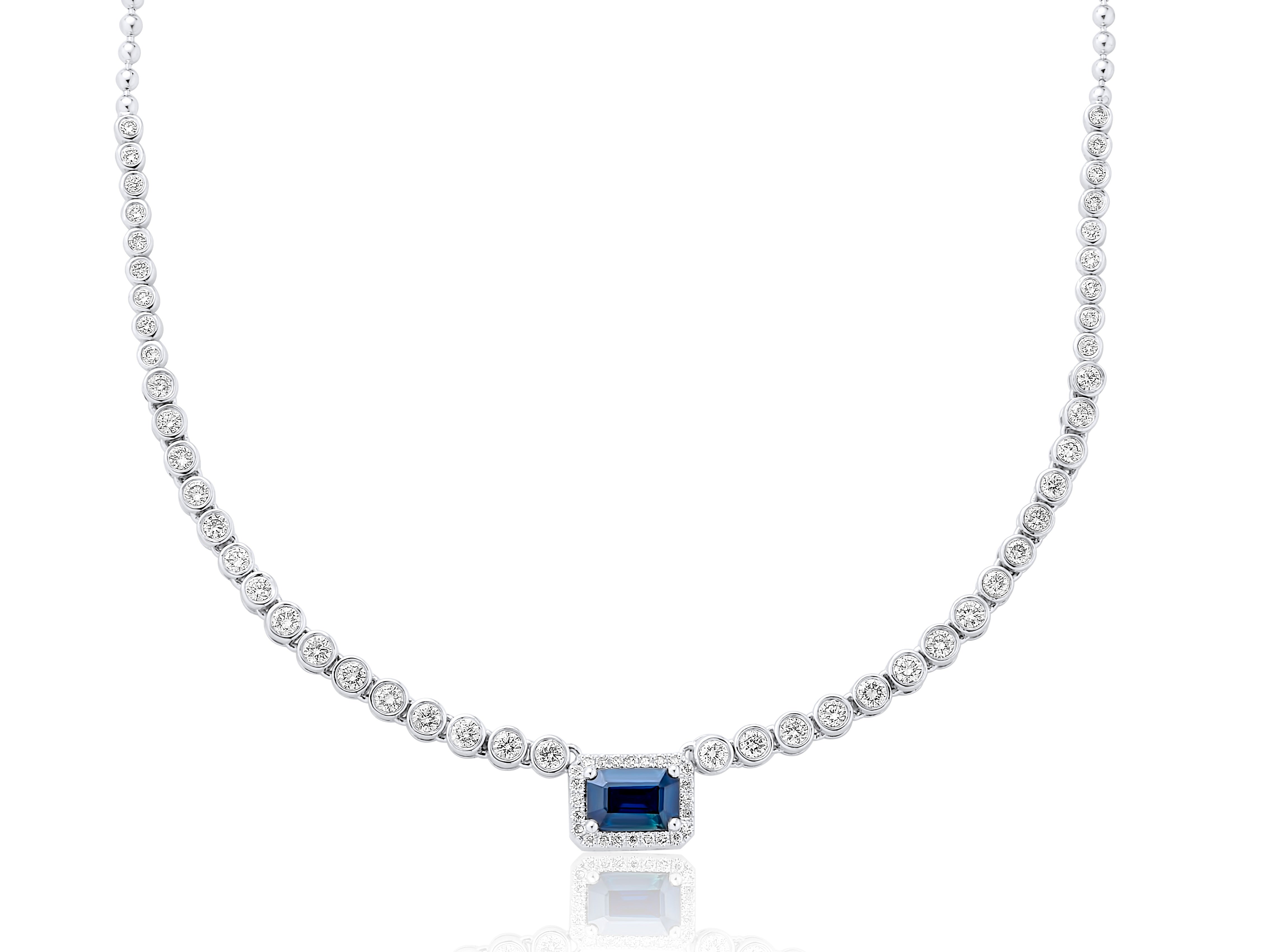 White Gold Bezel Set Sapphire and Diamond Necklace